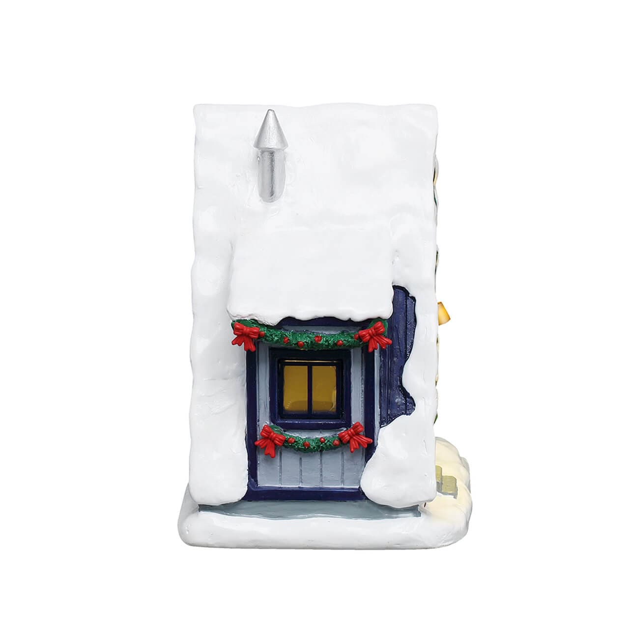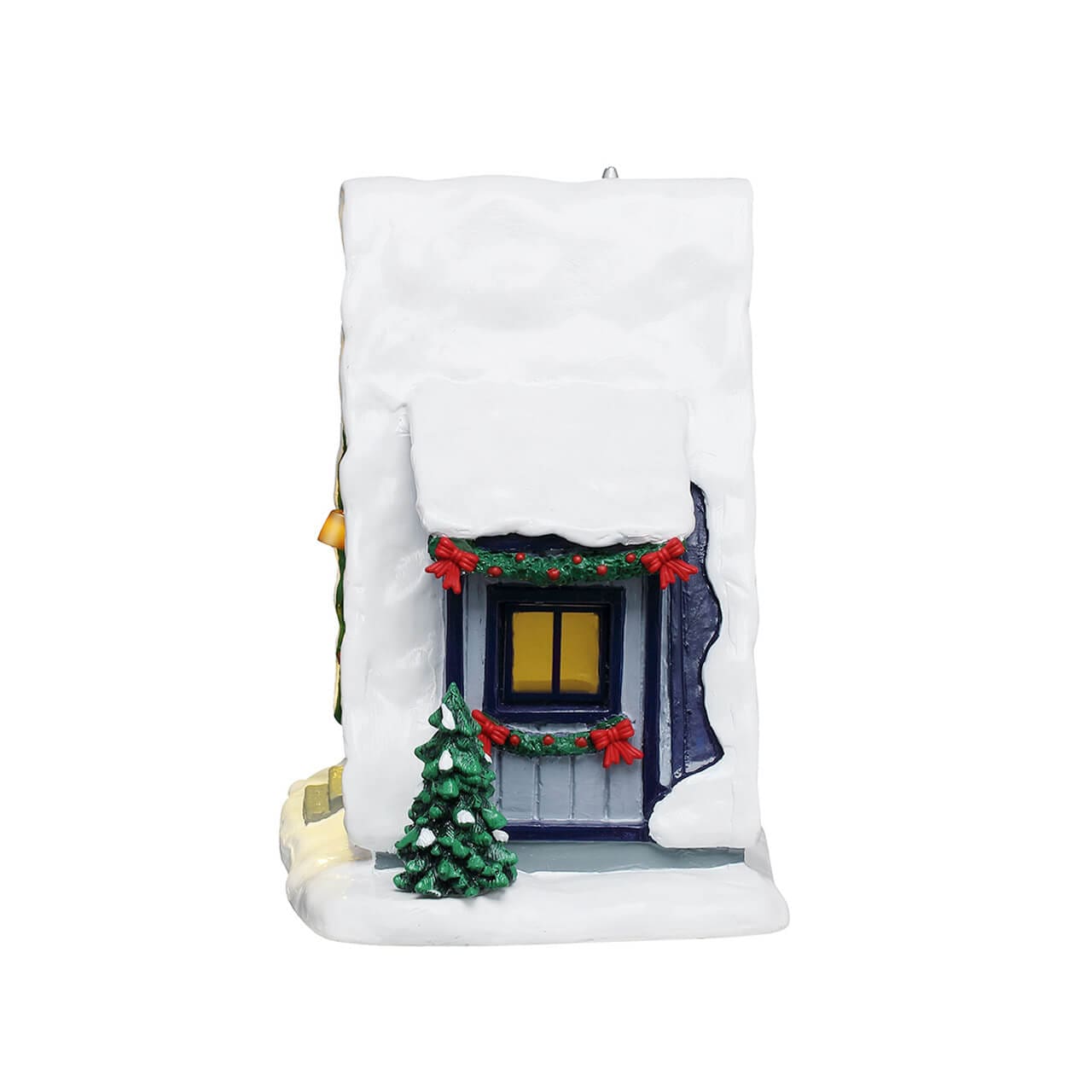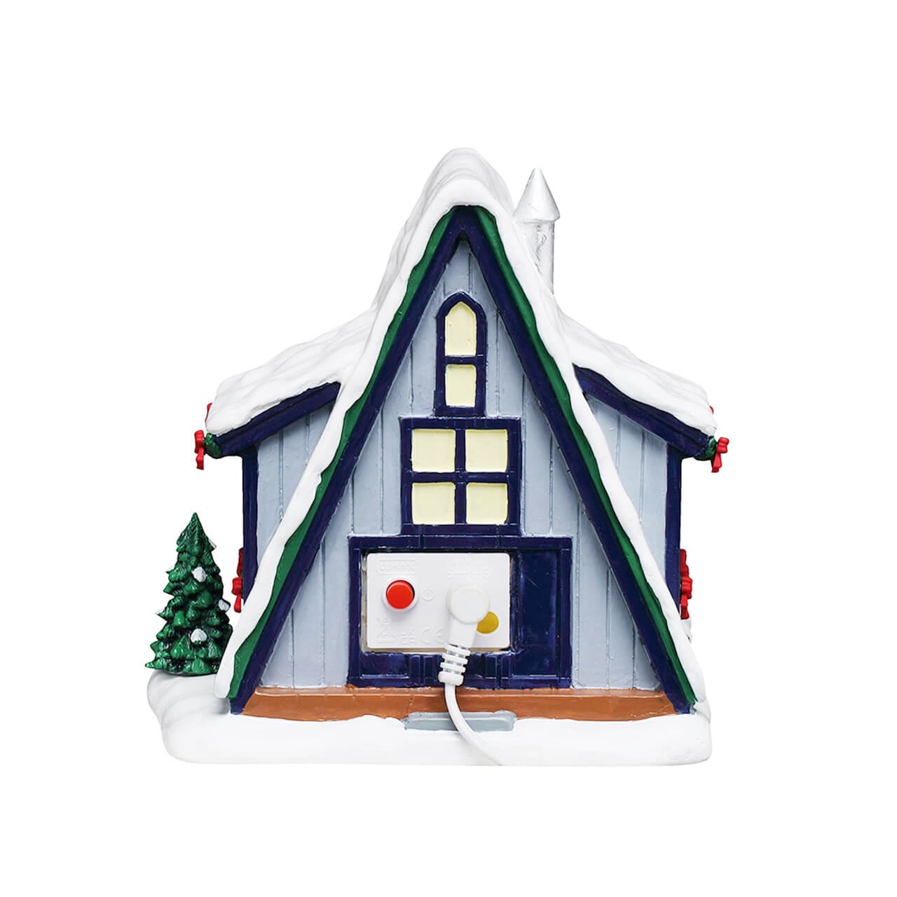 Description: A Frame Rental Home brings classic mountain charm to Vail Village, offering the perfect cozy retreat after a day on the slopes. Soft lights trace the steep snow covered roofline, highlighting the warm wood details, festive garland, and welcoming front porch. A small balcony and evergreen accents add character, while the glowing interior suggests a crackling fire and a quiet winter evening inside. Designed as a tabletop accent, this piece adds warmth, balance, and residential charm to any mountain scene, making it an ideal companion to ski shops, chalets, and alpine streets throughout the village.