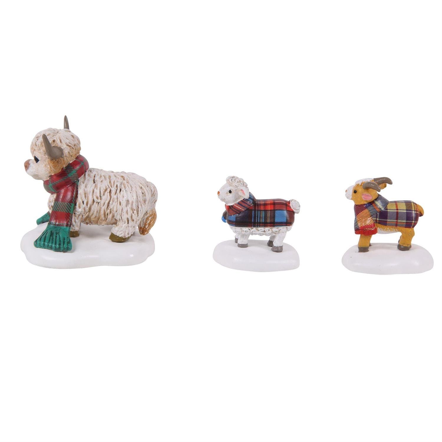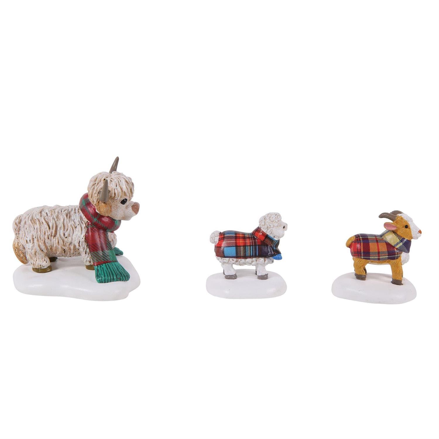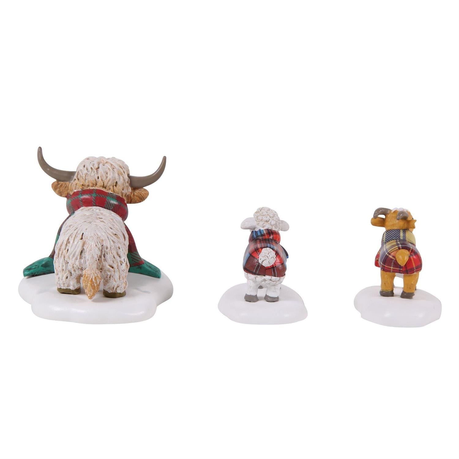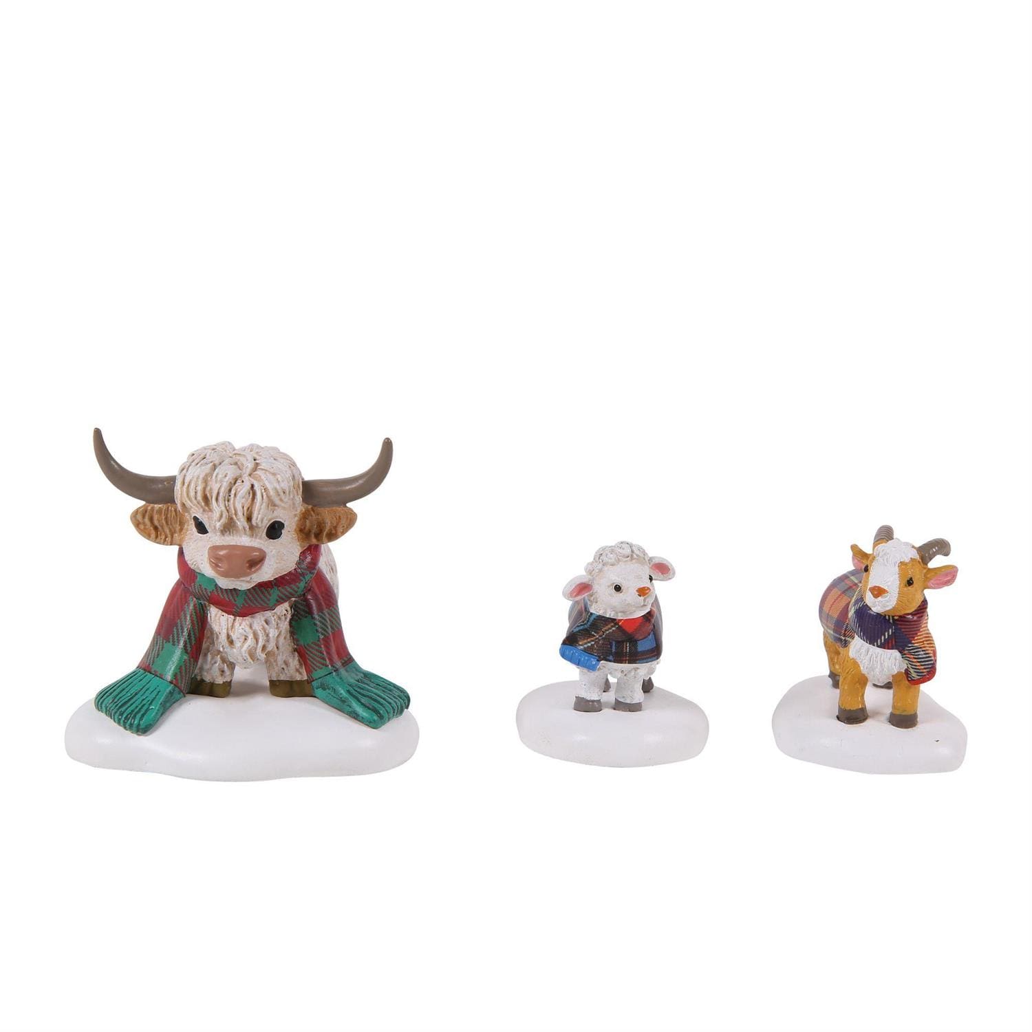 Festive fun from the Highlands! This trio of animals cozy up in plaid scarves, bringing charm and cheer to your holiday display.